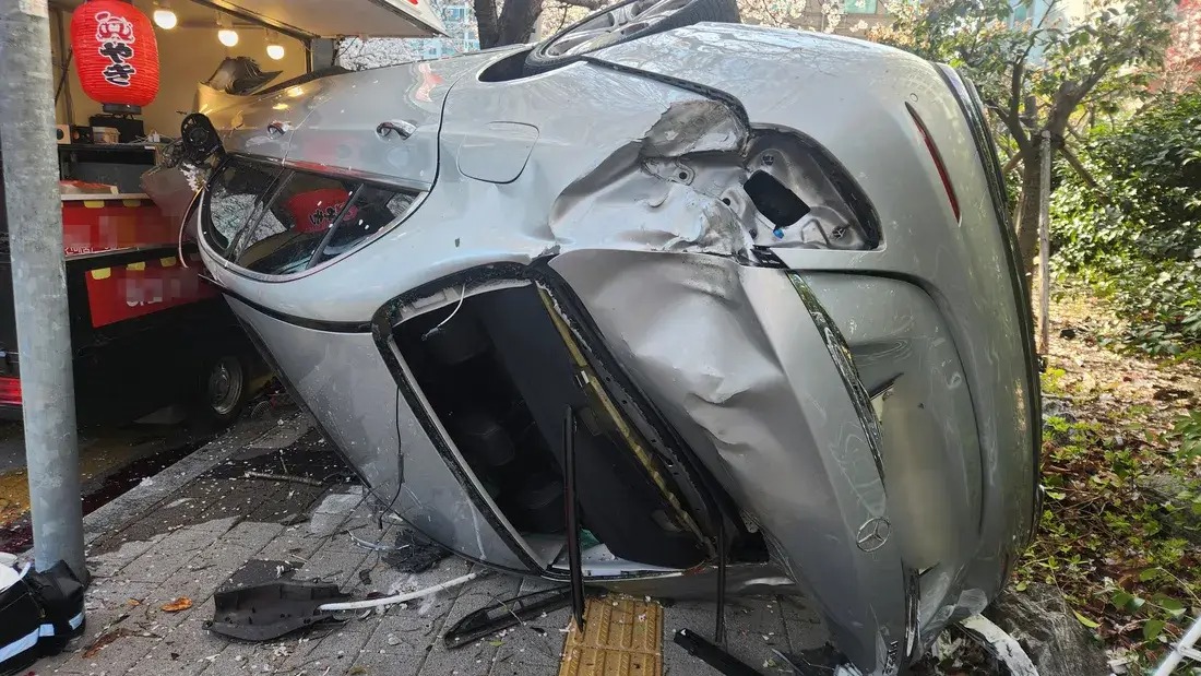 이날 오후 4시 12분경, 70대 여성 A씨가 운전하던 벤츠 승용차가 갑작스럽게 인도로 돌진하며 보행자 2명과 푸드트럭을 잇달아 들이받은 뒤 전복되었습니다.